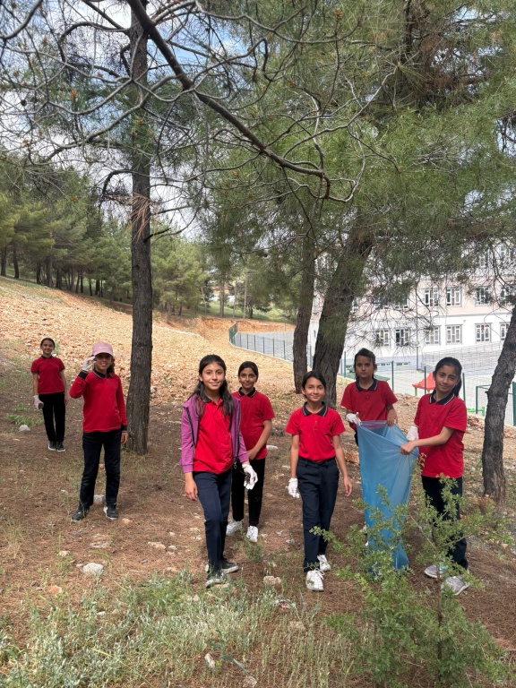 YEŞİL VATAN-BENİM OKULUM GELECEĞE ÇARE projesi kapsamında okulumuz Beden Eğitimi Öğretmeni Hilal Engin koordinesinde okulumuz yanındaki ormanlık alan okulumuz öğrencileri tarafından temizlendi.